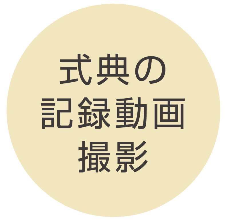 本記録動画では、舞台裏の様子も「オフショット」として撮影しています。お衣装合わせ、列席者のコメント、そして式進行スタッフの当日の動きなど。こうしたカットをつぶさに押さえておくことで、後日での視聴ががぜん楽しいものに。ご本人はもちろん、式に携わった人々皆の思い出として残る。もちろん動画ですから、静止画を切り出すことも可能。幅広く活用できる素材として活きてきます。そう、イベントは「当日」も「後日も」楽しめる。そのために「動画で記録を残しておく」ことが大切です。