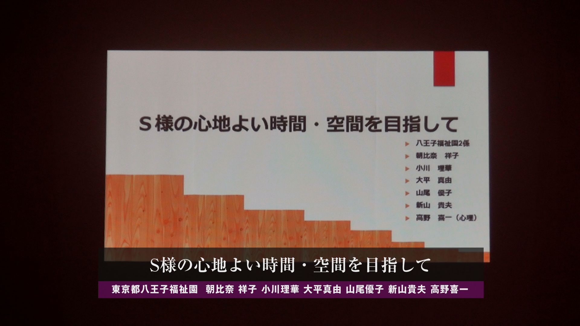 自治体から施設運営を委託されている事業団さまの、研究発表会記録です。例年行われている同事業団さまの発表会。毎年きちんと記録に残し、有効活用されています。こちらのイベント動画記録を当社がお手伝い。マルチカメラによる多角的なカットで、真剣勝負の発表を完全収録しています。スペースやスクリーン画面輝度など、実際は制約の多いロケーション。しかし小型機材の巧みな運用で、理想的な撮影を行いました。