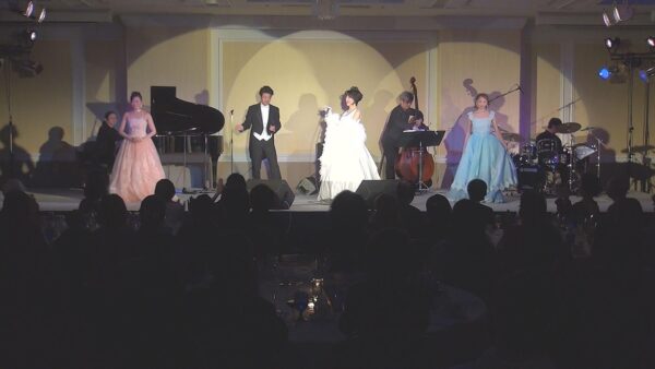元宝塚スター歌手様の、年末恒例ディナーショーです。都内一流ホテルで開催された本パーティ。当社が記録動画撮影を担いました。落ち着いた雰囲気の、素敵なバンケット。バンドメンバーも熟練の大御所ばかりで、期待が高まります。そんな中、オーソドックスながらフレキシブルなロケ技術を展開。ショーの一部始終を完全記録しました。何度でも楽しめる映像を残したい。低予算でもここまでできる。そんなご要望が見事に叶えられたロケとなりました。